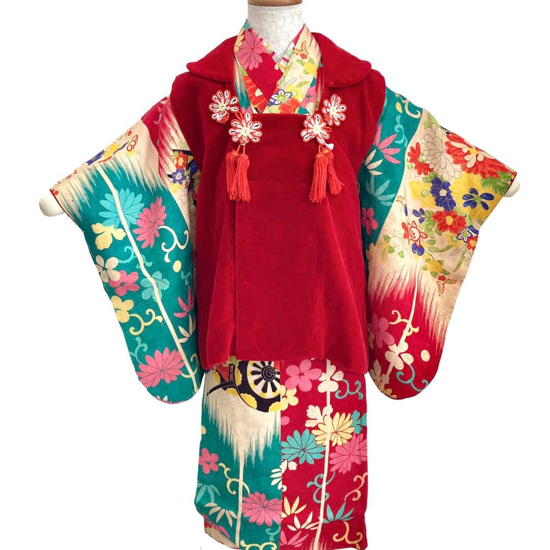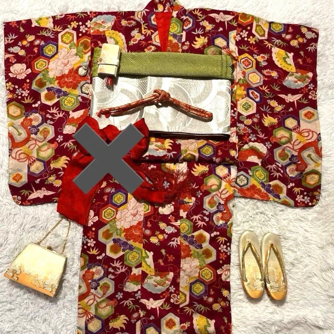 *こちらの商品は、お着物&帯のみです。\r\r流水地紋入りのオフホワイト地に、柔らかい色合いの総刺繍の松や丸文様が豪華で可愛らしい7歳七五三のお着物と袋帯のセットです(その他半衿、付け衿はセットに含まれません。)比翼付き\r\r袴と合わせてハーフ成人式や小学校の卒業式にもご利用いただけます。\r\rお小物類(帯揚げ、帯締め、新品のしごき)は別途4500円、また追加で筥迫と末広は+3000円頂戴します。\r\r(着物)※9枚目の画像が実物に一番近いお色です。左右内袖の矢印部分にシミがございますが、遠目から見たらあまり目立ちません。また、左後後身頃の裾から27㎝辺りにうっすら変色がございますが近くでよく見ないと分からない程度です。\r\r(長襦袢)こちらには長襦袢が付属いたしません。代わりにお子様の負担が少なく、便利な子ども用楽々衿をお勧めします。#ag楽々衿\r\r(帯)※一番最後の画像が実物に近いお色です。未仕立て品です。\r手先にうっすら青っぽい跡、垂れ先や帯の所々にうっすらアクのようなものがございますが近くで見ないと分からない程度です。また、帯裏に黒っぽいシミのようなものがいくつかございますが着用時見えません。\r\r【素材】(着物)正絹、(帯)正絹\r【色】オフホワイト系\r【サイズ】(着物) 裄:48cm、肩上げ:5cm、袖幅:32cm、袖丈:71.5cm、丈(肩から):135cm、腰上げ:0cm、前幅:20cm、後幅:25.5cm\r(帯) 幅:25.2cm、長さ:390cm\r\rお求め安い価格での出品ですので、いかがでしょうか?\r\r即決購入歓迎します。\r複数購入の場合は、お値引きいたしますのでコメントください。\rご不明な点は、ご購入前にお気軽にご質問ください。\r1日経ってもコメントへの返信がない場合は、見落としの可能性がございます。お手数ですが、再度ご質問いただければ幸いです。\r\r7歳女の子はこちら #ag子供7歳\r女の子はこちら #ag子供\rハーフ成人式はこちら #aハーフ成人式\rgd\"