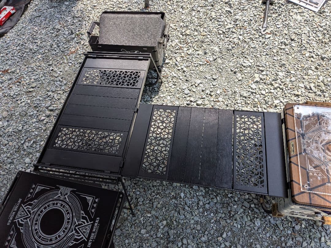 ブラックデザイン 日和のセットになります。【セット内容】日和日昇アイアンプレートツリー柄✕2BXプレート五徳ストレージバッグキャンプで10泊程度使用しています。中古品になりますのでご理解頂いた上でご購入お願い致します。バラ売りは致しません。#ブラックデザイン#BLACKDESIGN#日和#日昇#アイアンプレート#BXプレート#五徳#ストレージバッグ#キャンプ#テーブル#IGT