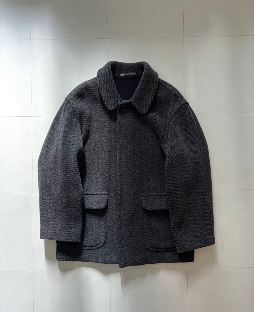ムーアプルツクのとても、軽い生地でヘリンボンの編み込みは最高です、左袖ボタン半分かけていますが、着用に問題ありません、9番の写真です、肩幅/身幅/袖丈/着丈肩幅···45cm身幅···56cm袖丈···56cm着丈···96cmユニセックスです、前の打ち合わせは、レディース、メンズどちらでも、okです、カラー···グレイ系汚れ・破れ・臭いなど···なし 最終値下げになります、これ以上の値下げは出来ませんのでよろしくお願いします、