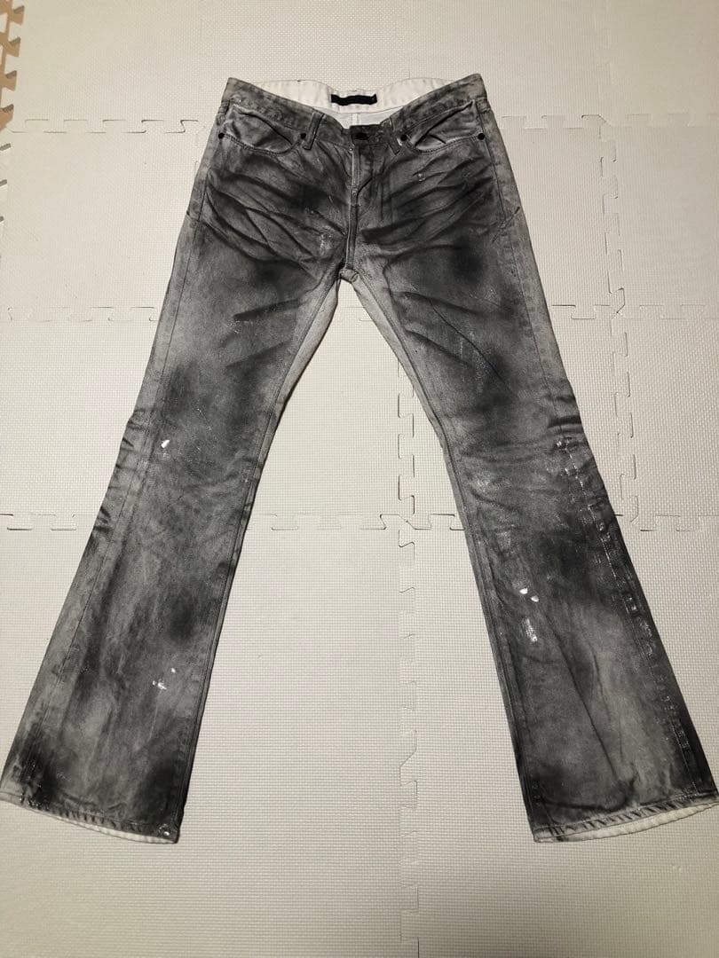 GRANCY ダメージ加工 ブラックデニム フレアパンツ GRANCY パンツ 「GRANCY」Leopard Damage Flare Pants / レオパード