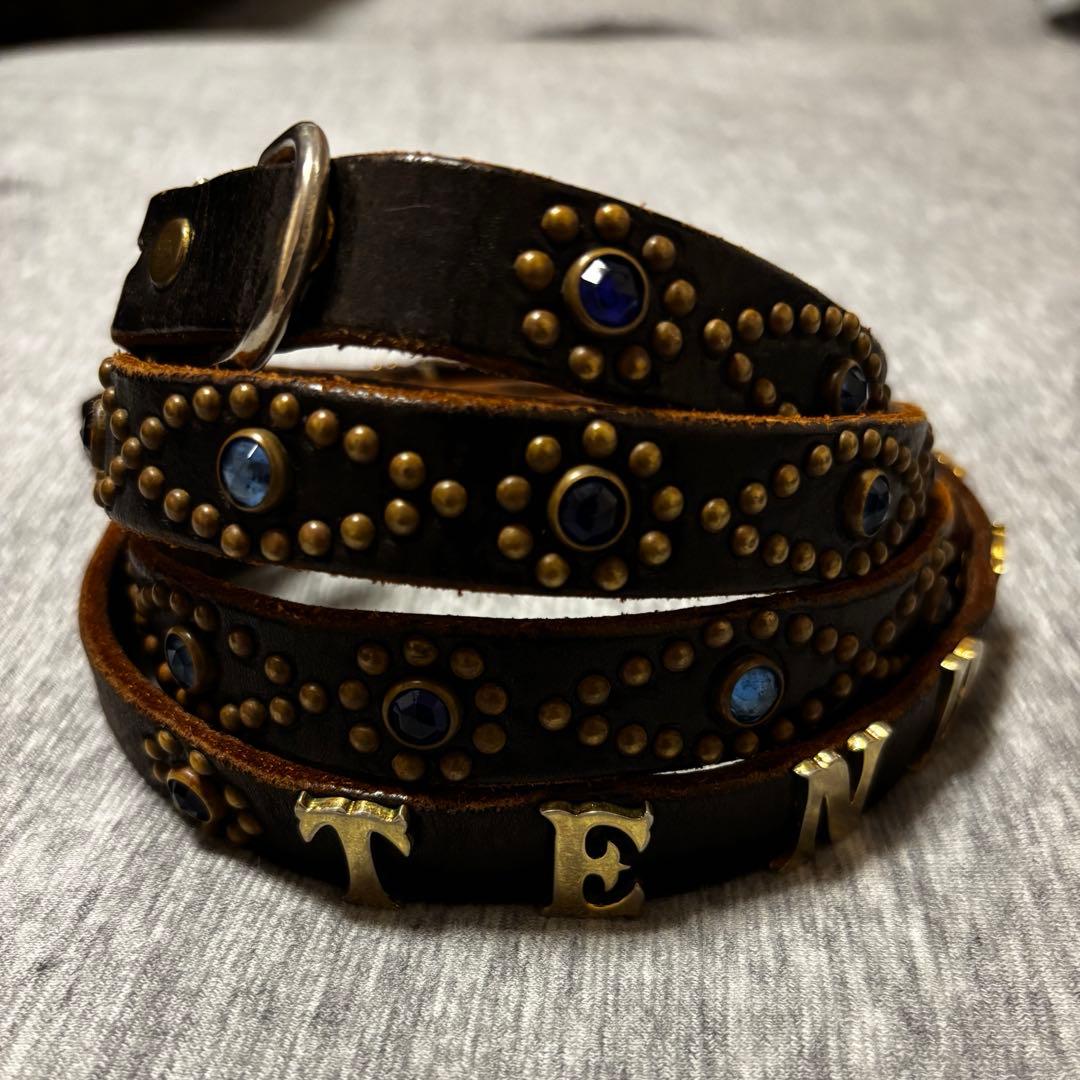 クリストファーベイリー期のプローサムコレクションです2連 茶色 素材:レザー全長121cm、幅3cm、最短穴まで99cm