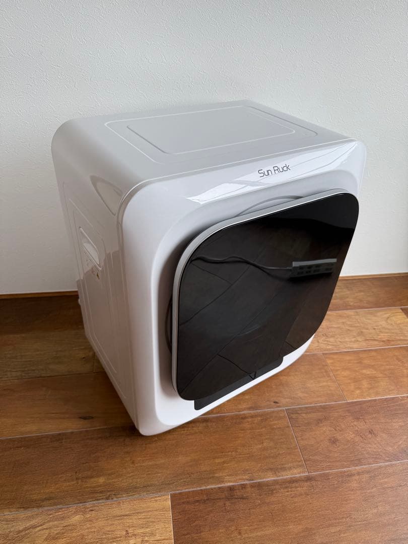 家の空いたスペースに置ける小型衣類乾燥機です。最短15分乾燥出来ます。1人暮らしや外で乾燥出来ない場合にオススメな商品です!靴の乾燥などにも対応してます。目立つ汚れもなく、まだまだ使用できます。定価 69,800円(税抜)~~~~~~~~~~~~~~~~~~~~【商品名】Morus Zero 小型衣類乾燥機モルスゼロ幅415mm 奥行528mm 高さ489mm重さ:13kg乾燥容量:1.5kg電気周波数:50/60Hz電圧:100v〜120vカラー:ホワイト【商品説明】① 家事をより効率化させ、毎日が楽になる独自に開発した世界初の真空負圧乾燥技術を採用。従来の乾燥機よりも、乾燥速度が60%以上はやく、最短15分で乾燥が可能。② コンパクトで工事不要、狭いスペースでも利用可能面倒な設置工事は不要。コンセントさえあれば、どこでも使用可能。限られたスペースでも邪魔しません。③ 雑菌繁殖やPM2.5の付着を避け、外干しの不安を解消99.99%除菌やダニ除去の機能により、花粉症対策にも。パワフル温風(70㎞/hの速度)で嫌な生乾き臭もカット。Morus(モルス) 乾燥機 小型衣類乾燥機 1.5kg 衣類乾燥機 電気衣類乾燥機 工事不要 時間短縮 一人暮らしミニ乾燥機 PM2.5 花粉 梅雨対策 衣類乾燥 靴乾燥 Morus Zero