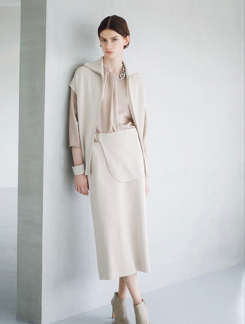 あまり着用した覚えがなく、自宅保管しておりました。一年中お召しいただけるお品です。ピンクベージュSサイズ両サイドポケット付き